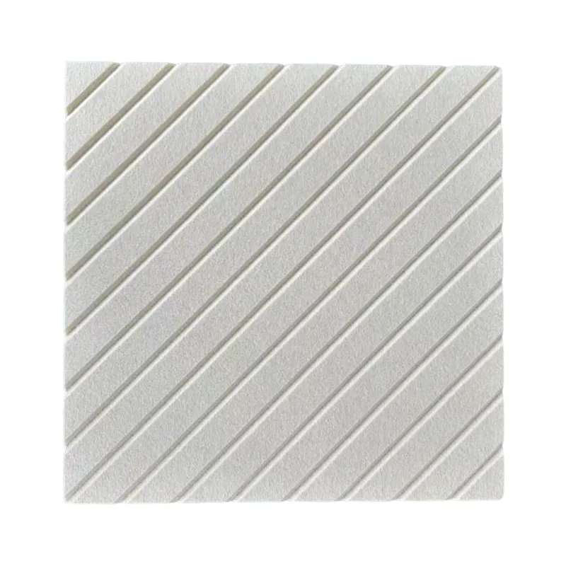 Panel akustik V-cut PET sing berkualitas tinggi nggunakake serat poliester 100% minangka bahan dhasar, kanthi tekstur potongan V sing alus ing permukaan, krasa alus lan nyaman nalika disentuh. Interioré kapenuhan micropores apik sing èfèktif njebak swara nalika impact, nyegah bayangan lan reverberation. Iki ora mung ngrampungake swara gema nanging uga nambah estetika tembok kanthi warna krem sing serba guna, mesthekake pengurangan swara ora bertentangan karo gaya dekorasi sampeyan - praktis lan apik!