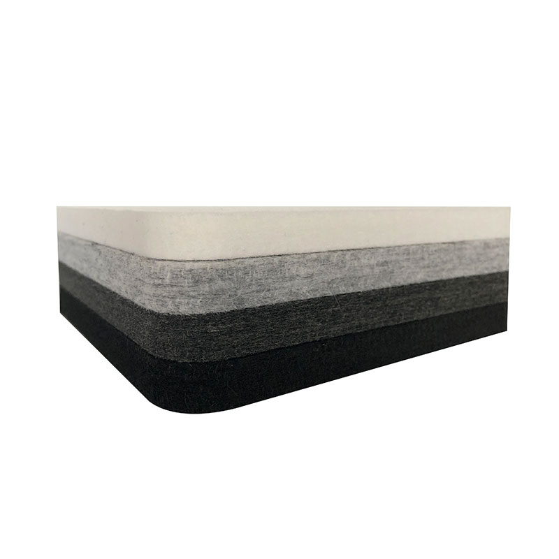 Kanthi jarum-punching, ana akeh bolongan cilik ing panel akustik PET, sing ndadekake panel akustik PET produk akustik sing apik kanggo nyuda gangguan lan nggawe swara luwih apik, papan sing luwih tenang.