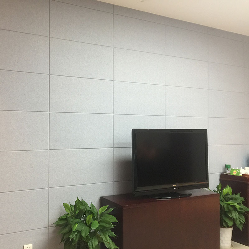 Panel Panutup Tembok Akustik PET digawe saka 100% poliester, kanthi pangolahan pukulan jarum. Proses produksi rampung fisik & ramah lingkungan, ora ana banyu limbah, emisi, sampah,. ora adhesive, Sifat keropos saka panel akustik ndadekake swara nyerep & insulative termal karo fitur saka Non-beracun, non-alergi, non-irritant lan ora ngemot binders formaldehida lan NRC dhuwur: 0.85